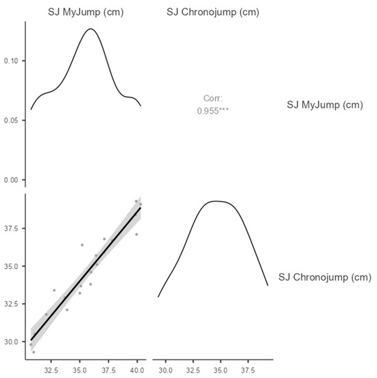 Correlation matrix between SJ measurements from MyJump and Chronojump.