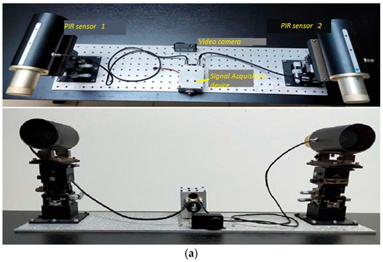 The analog output of each PIR sensor was digitized using a data acquisition module based on a microcontroller STM32L476RG [35] and sampled at 1024 Hz. A high-speed camera (200 fps) was simultaneously used as a reference measurement system, enabling the extraction of ground truth vehicle speeds by tracking vehicle position across successive video frames.