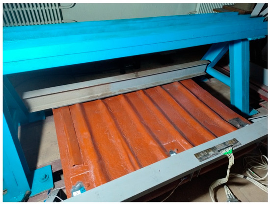 Bench tests were conducted in the research laboratory of the “Center for Diagnostics of Transport Structures” at the Ukrainian State University of Railway Transport (Kharkiv) in order to experimentally substantiate the use of the removable module. This study was conducted on an example of the unloading hatch cover of an open wagon, which is a component of its floor.