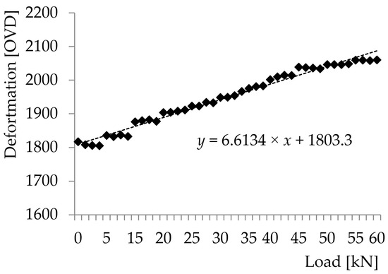 The largest deformation obtained during the tests was recorded by the third group of the strain gauge (Figure 22).