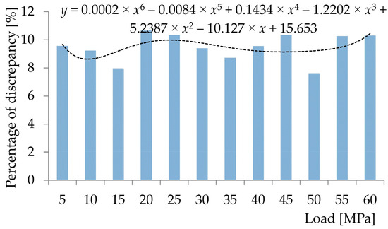 The maximum stresses recorded in the hatch cover were 115.4 MPa. These stresses are lower than the allowable ones by 45%. The difference between the results of computational calculations of the hatch cover strength and experimental studies is shown in Figure 24.