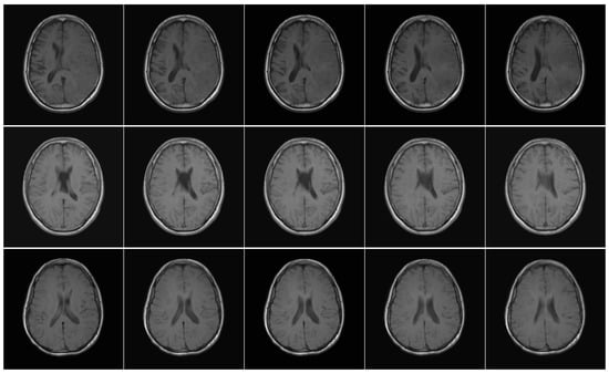 The RSNA and MICCAI developed a data set named the RSNA-MICCAI brain tumour radiogenomic classification for the BraTS 2021 challenge [21], which is available to the public through the Kaggle platform. This data set comprises multi-parametric magnetic resonance imaging (mpMRI) scans acquired from multi-institutional benchmarks, retrospectively collected for the prediction of a specific genetic characteristic of GBM, namely, the MGMT promoter methylation status, fulfilling strict inclusion criteria for image quality and diagnostic confirmation. An mpMRI scan typically includes four imaging modalities, each contributing distinct contrast mechanisms that facilitate tumour characterisation. In this study, only T1w images were selected for analysis (Figure 1), as this sequence provides the most morphologically informative signal [27]. All images were standardised to a resolution of 512 × 512 pixels to guarantee uniformity between analyses.