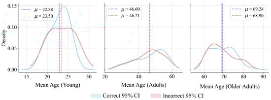 To assess the fairness of model predictions, a statistical evaluation was conducted. The Mann–Whitney U test did not identify significant differences in age distributions between correct and incorrect predictions within age cohorts, with p-values of 0.599, 0.466, and 0.583 for young, adult, and older adults, respectively. Similarly, the Chi-squared test showed no significant association between sex and prediction correctness (, ). Confidence intervals overlapped, and power analyses confirmed test sensitivity to moderate effects. These results support the absence of demographic bias. Unlike previous works reporting performance variability due to imbalance or hidden covariates [46], our model showed consistency across demographic subgroups. Although CNNs can internalise latent patterns that lead to disparities [46], the methodology applied here reinforces the robustness of our findings. This aligns with best practices in fairness-aware AI and contrasts with studies where data set imbalance introduced bias [47].