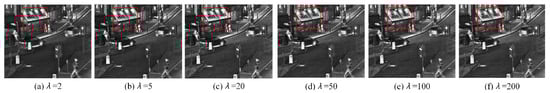 Fused results with different parameter λ. The red box marks the target area used for comparison.