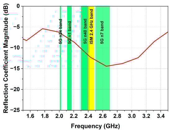 Figure 7. Measured reflection coefficient magnitude versus frequency.