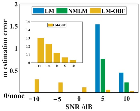 The traditional LM algorithm and the NMLM algorithm proposed in this study are compared to determine the effectiveness of the LM-OBF method in estimating magnetic dipole parameters under strong noise interference conditions [48]. The NMLM algorithm introduces a new method for calculating the damping factor by analyzing the impact of noise on higher-order and lower-order matrices, which significantly improves the adaptability of the LM algorithm to noise.