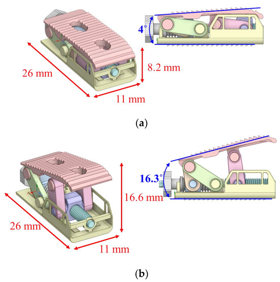 Modeling of expandable cage. (a) Initial state. (b) Maximum extended state.