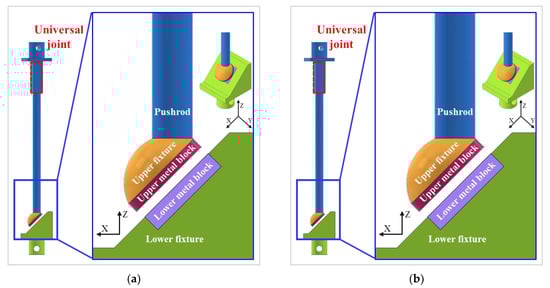 Experimental setup for mechanical test with ASTM F2077 condition. (a) Compression test. (b) Compression–shear test.