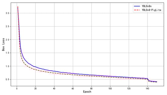 The training set inputs of YOLOv8n and the improved method YOLOv8-PigLite are utilized to compare the convergence of loss values.