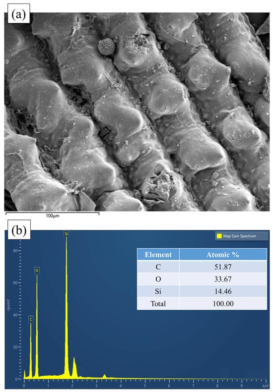 SEM (a) and EDS (b) result of rice husk biochar.