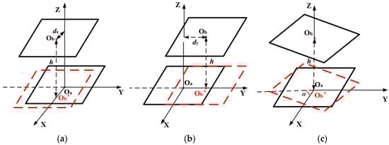 Coupling mechanism offset in the horizontal direction. (a) Transverse displacement. (b) Longitudinal displacement. (c) Rotational displacement.