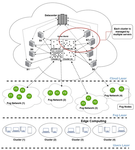 This layer utilizes fog computing and multiple servers within a single cluster to reduce latency. When game servers within a cluster become overwhelmed, they can temporarily invoke nearby fog nodes to assist with processing. This ensures system flexibility and scalability even under heavy load conditions. These fog servers also perform load balancing to guarantee low latency and good QoE.