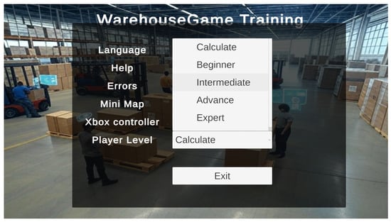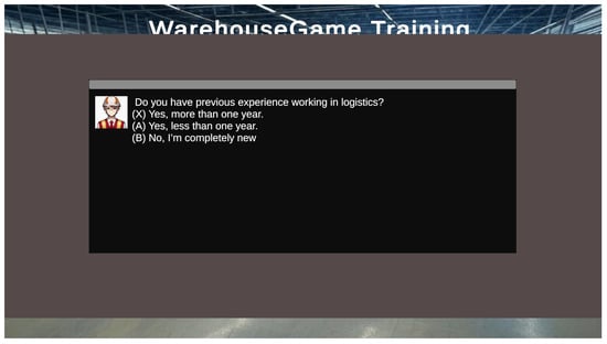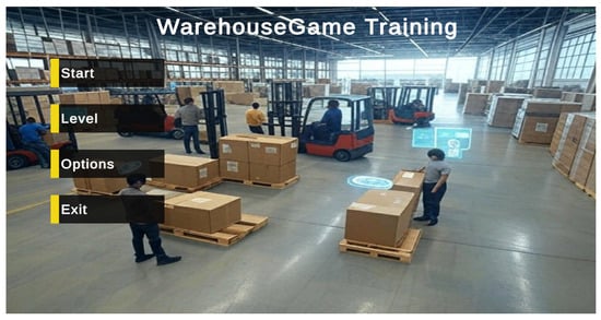 - Marras, J.R.; de la Torre Cubillo, L.; García, D.C. WarehouseGame Training: Demonstration Video. Available online: https://www.youtube.com/watch?v=Cr84hdYre8I&t=6s (accessed on 1 June 2025).