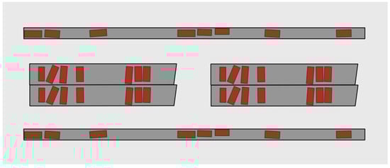 The optimization process was designed to maximize the number of vehicles placed within the available parking space while ensuring an optimal arrangement. The optimization framework was derived from the study by Janowski, Hüsrevoğlu, and Renigier-Bilozor [31] and extended with new heuristic methods, additional vehicle types (the Citroën Ami and Volkswagen Crafter), and vertical parking configurations. These modifications allow for a more comprehensive evaluation of vehicle placement strategies, particularly in unmarked parking areas.