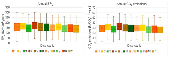 Annual EPnr consumption and CO2 emissions by district.