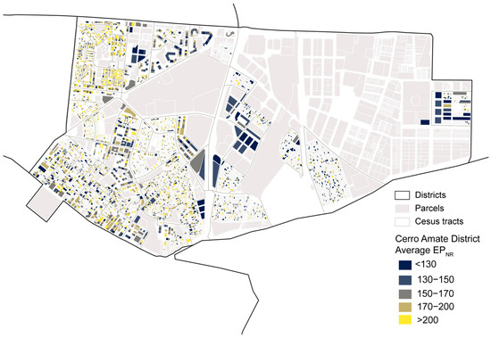 In order to carry out a more detailed study, in addition to the analysis of energy efficiency and energy vulnerability at the district level in Seville, district 4 (Cerro-Amate) was selected as a sample for analysis at the census tract level. This choice is justified by the need to establish an evaluation procedure that can be replicated in other districts and in the interest of exploring in depth a representative area in terms of dwelling typologies.