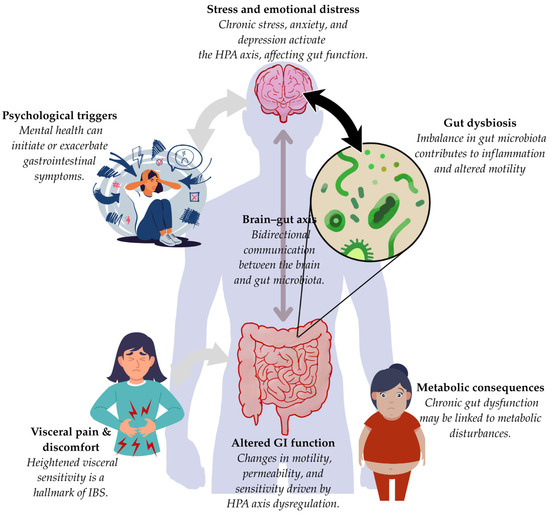 - Tang, H.-Y.; Jiang, A.-J.; Wang, X.-Y.; Wang, H.; Guan, Y.-Y.; Li, F.; Shen, G.-M. Uncovering the Pathophysiology of Irritable Bowel Syndrome by Exploring the Gut-Brain Axis: A Narrative Review. Ann. Trans. Med. 2021, 9, 1187. [Google Scholar] [CrossRef]