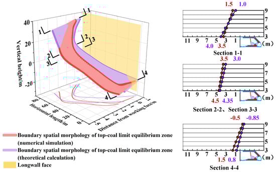 Chicago/Turabian StyleLang, Ding, Xiaobo Wu, Yongping Wu, and Panshi Xie. 2025. "Boundary Spatial Morphology of Top-Coal Limit Equilibrium Zone in Fully Mechanized Top-Coal Caving Stope in Steeply Dipping Coal Seam" Applied Sciences 15, no. 12: 6443. https://doi.org/10.3390/app15126443