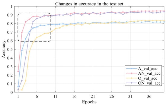Accuracy of different models in the training cycle. The content within the black dashed box is the main focus of this paper.