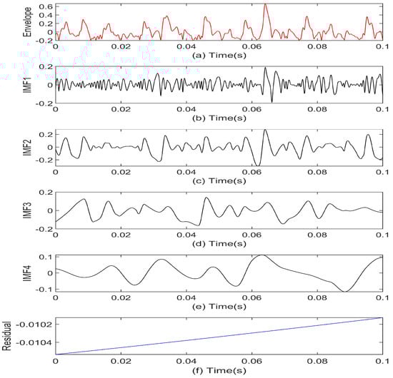 Formula (5) meets the conditions of the IMF and can be regarded as the first-order IMF, denoted as . Among them, refers to the average value of the upper and lower envelope lines of .