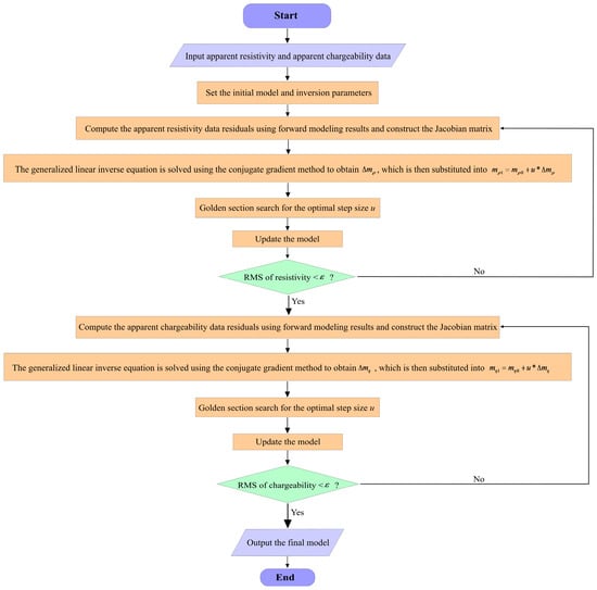 The workflow of the spread-spectrum induced polarization equivalent inversion algorithm is illustrated in Figure 3.