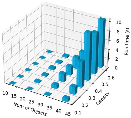 In this section, we evaluate the completeness and performance of our proposed  algorithm. We compared it with Qian’s method—the generation of three-way object-oriented concepts []—for which we used Ma’s algorithm to acquire object-oriented concepts []. We call it the QM algorithm for the sake of convenience. All algorithms were implemented in Python 3.8, and all experiments were run on an otherwise idle Windows system.