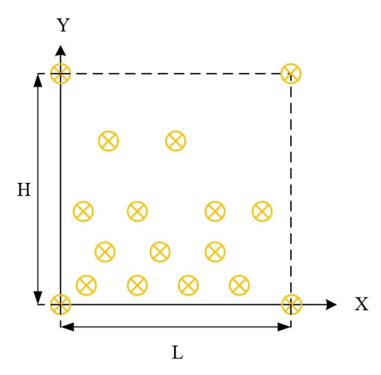This study proposes a sparse concentric circular array. Due to the identical center position in concentric circular arrays, it can be regarded as the combination of multiple uniform concentric circular arrays, and a classic array is shown in Figure 8.