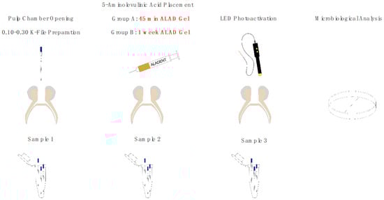 - D’Ercole, S.; Carlesi, T.; Dotta, T.C.; Pierfelice, T.V.; D’Amico, E.; Tripodi, D.; Iezzi, G.; Piattelli, A.; Petrini, M. 5-Aminolevulinic Acid and Red Led in Endodontics: A Narrative Review and Case Report. Gels 2022, 8, 697. [Google Scholar] [CrossRef]