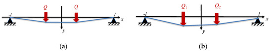 Following this logic, one can also construct the fragmented beam deflection under a couple of point loads of equal, Figure 9a, or different, Figure 9b, magnitudes.