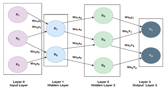 The sequential model in Tensor Flow/Keras is used in a feedforward Artificial Neural Network architecture consisting of densely connected layers with distinct numbers of neurons and ReLU activation functions. An input layer of the network initially accepts 13-dimensional feature vectors. It then moves through a sequence of hidden layers with fewer neurons (1000, 750, 500, 250, 100, and 50 per layer). The network can extract more intricate features from the input data because of its hierarchical structure. The network learns complex patterns and represents non-linear relationships in data. It starts with an input layer and progresses through hidden layers with decreasing numbers of neurons. A probability distribution across the classes is created by smearing the softMax stimulation task over the output cover. As a result, each input sample’s class probabilities can be predicted by the network, as shown in Figure 10.