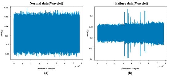 (a) Noise reduction normal data (Wavelet). (b) Noise reduction failure data (Wavelet).