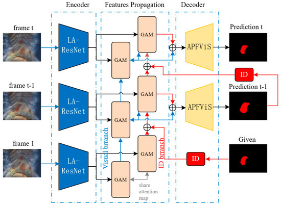 Finally, the enhanced features from both branches are fused and fed into the APFViS decoder to produce fine-grained segmentation masks for each frame.