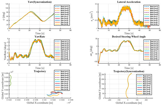 The weighting factors in Equations (27)–(29) for the dynamic consistency indices were set to equal values ( = 1/6 for each DOF) to ensure balanced representation of all six degrees of freedom in the dynamics-based evaluation. These weights can be modified based on the specific vehicle dynamics characteristics being emphasized in the evaluation.