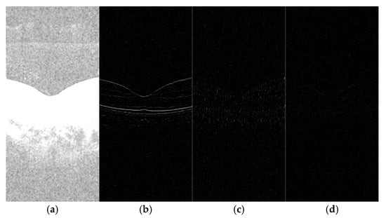 Traditional image denoising methods [], such as the least squares method [] and median filtering, have been extensively applied to denoise OCT images. While these methods can effectively reduce speckle noise to some extent, they often result in the loss of image details. Another common denoising approach is Anisotropic Diffusion [], which, while preserving certain edge information while removing noise, often falls short when dealing with high-noise OCT data, failing to meet the requirements for high-quality image restorations. In comparison, wavelet transform methods [] have demonstrated superior performances in image denoising, effectively distinguishing between noise and signal components through a multiscale processing approach.