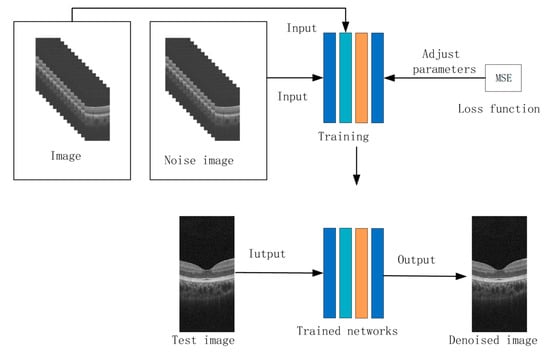With the widespread application of OCT, the quality of OCT images has emerged as a significant factor influencing diagnostic effectiveness. Although OCT systems are capable of providing high-resolution structural information during imaging, the image quality is often compromised by the presence of speckle noise [,]. To enhance the visualization of OCT images and extract more precise diagnostic information, image denoising has become a crucial task in post-imaging processing [,,,,].