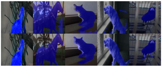 (1) Audio Feature Extraction and Fusion Module Test: The Ref-AVSbench test dataset was imported into the trained network. Consistent with the training setup, the space–time memory network stored three historical frames, the audio feature extraction and fusion module threshold was set to 0.5, and the label mask from the first frame was used as the model input. The network’s performance was evaluated based on the mIoU and F-score of the model output. (2) Audio Feature Extraction and Fusion Module Ablation Experiment: The audio module was removed from AG-STMNet, and only the image and mask data from the Ref-AVSbench test dataset were used for evaluation. The testing procedure remained identical to the previous setup, and the impact of the audio module on the model’s performance was analyzed using the output metrics. (3) Complete Model Test: The mask generator was integrated with AG-STMNet to form a complete model. The Ref-AVSbench test dataset was imported to evaluate the complete model’s performance. During testing, the output of the audio-visual fusion mask generator served as the input to AG-STMNet, while all other settings remained unchanged. The experimental results are presented in the table below: