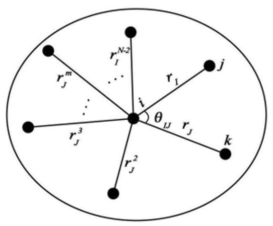 The SW potential, originally presented in [64], accounts for both two-body and three-body potentials, where the interatomic potential energy varies with bond length and corresponding angle. Initially formulated for silicon modeling, the perfect tetrahedral angle is defined as the initial bond angle. In 2014, Zhang et al. [55] enhanced the SW interaction by establishing the initial bond angle in an undeformed setup, which was used as a baseline, broadening its applicability beyond silicon to encompass a wider range of materials (Figure 1).