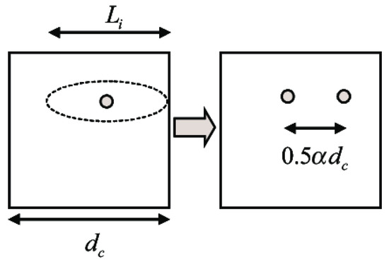 where is the size of the background cell; is the coefficient that controls the smoothness of the smoothing function ; is the distance from the contact node to the object’s surface, approximated by traversing all the material points of the object from the contact node, which requires the refinement of both particles and grids for a satisfactory approximation. To address this, Hammerquist and Nairn [19] proposed a more accurate distance formula derived from the extrapolated distance :