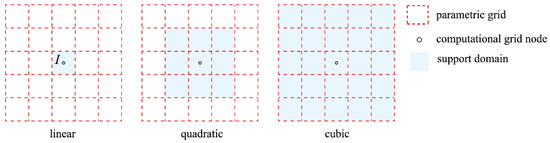 The support within the parametric grid of the B-spline basis function with different orders at computational grid node [83].