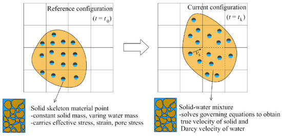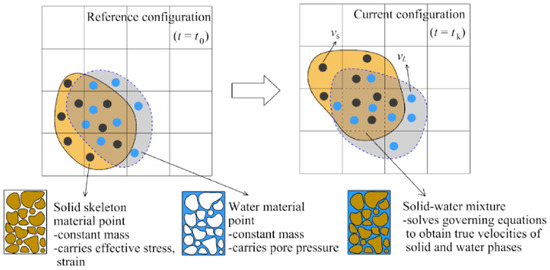 - Bandara, S.; Soga, K. Coupling of soil deformation and pore fluid flow using material point method. Comput. Geotech. 2015, 63, 199–214. [Google Scholar] [CrossRef]