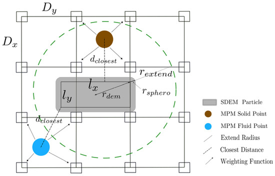 - Ren, S.; Zhang, P.; Galindo-Torres, S. A coupled discrete element material point method for fluid–solid–particle interactions with large deformations. Comput. Methods Appl. Mech. Eng. 2022, 395, 115023. [Google Scholar] [CrossRef]