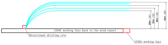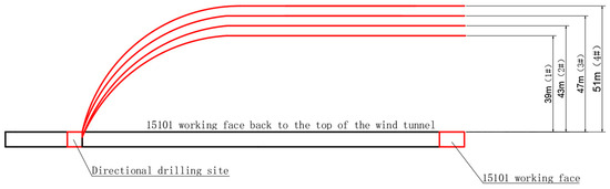 The drilling arrangement is shown in plan view, and the sections are shown in Figure 8 and Figure 9. Table 3 shows the actual drilling parameters of the directional high-level long boreholes.