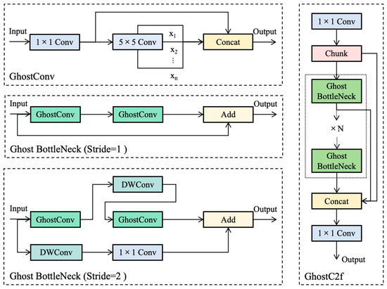 Among the various models that have implemented lightweight improvements to backbone networks, GhostNet offers a highly effective strategy, with its core lying in the GhostConv convolutional module. Compared to traditional convolutional modules, GhostConv introduces an efficient transformation mechanism for generating redundant feature maps. This approach significantly reduces the model’s complexity and runtime resource consumption while maintaining detection accuracy. Based on this, in the design of our backbone network, we comprehensively replaced the standard convolutional layers with GhostConv and constructed the GhostC2f module. The GhostC2f module not only inherits the efficient characteristics of GhostConv but also retains the multi-scale feature fusion and deep information mining capabilities of the original C2f module, further enhancing the network’s overall performance.