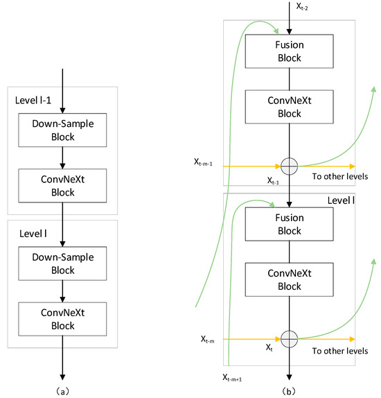 RevColNet micro structure: (a) first column level; (b) second and subsequent middle columns.