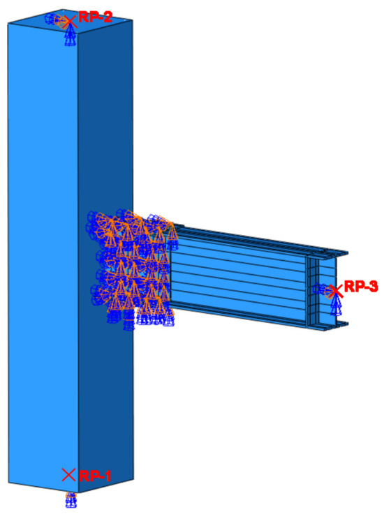 - The rivet contacts the tie binding the bottom of the floor slab with the upper flange of the steel beam. The finite element model of node FJD-0 is shown in Figure 11.