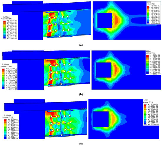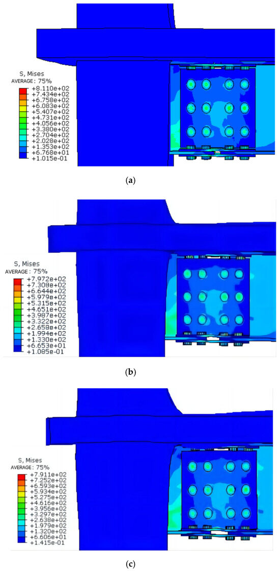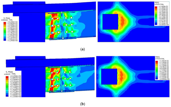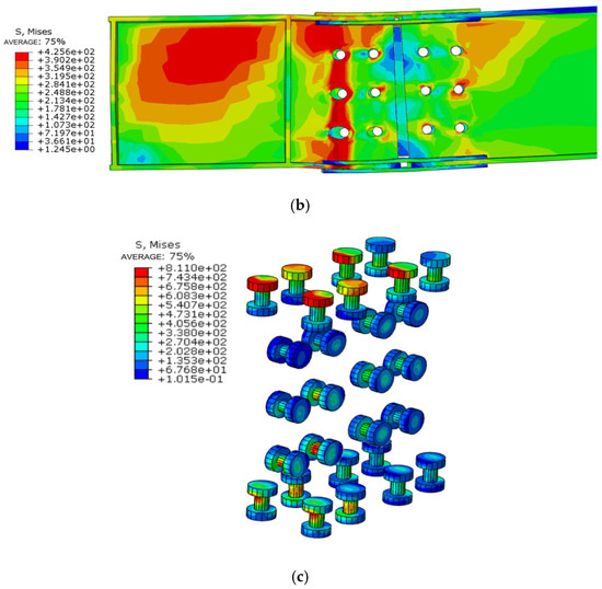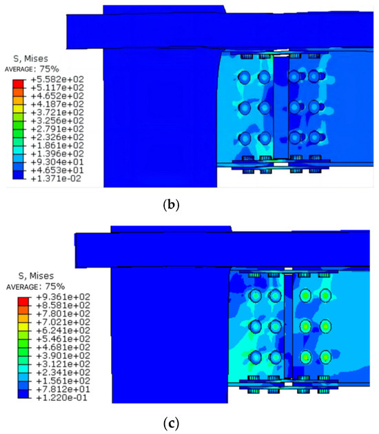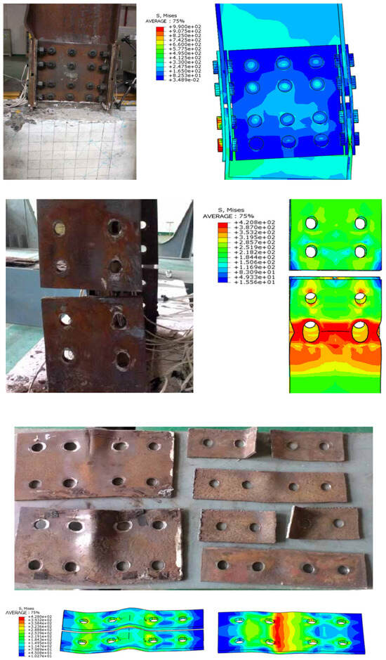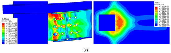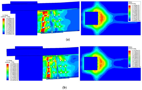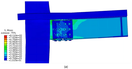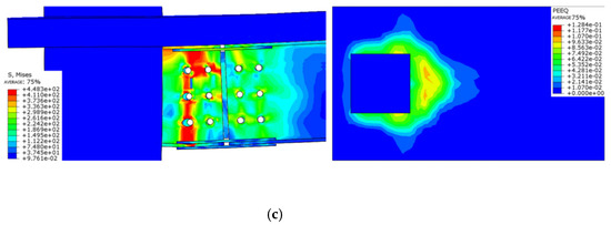 - The floor effect changes the node damage form and enhances the connection strength, with the maximum stress concentrated in the connecting bolt and the plastic hinge occurring at the end of the beam, which conforms to the design code of “strong column weak beam”. The strength of the connecting bolt should be strengthened.