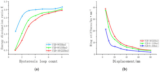 4.1.3. Energy Consumption Capacity and Stiffness Degradation