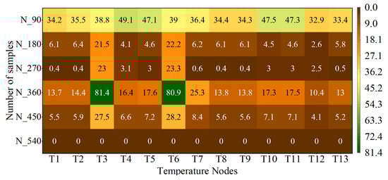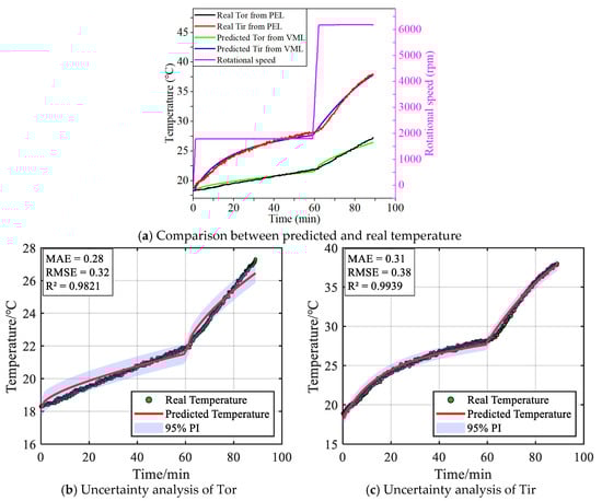 To further verify the transient accuracy of the thermal prediction model under variable radial load conditions, uncertainty analysis is conducted on the predicted and real temperatures of the reference nodes at 4000 N·m and 5500 N·m, as shown in Figure 17.
