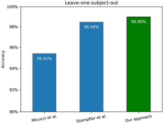 18] achieved the highest result for 5-Fold Cross-Validation among competitors (0.05 percentage points more than our model). On the other hand, our model dominated the competitive solutions (0.51 percentage points) for the Leave-One-Subject-Out strategy.