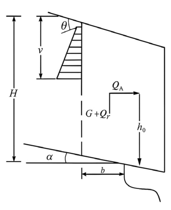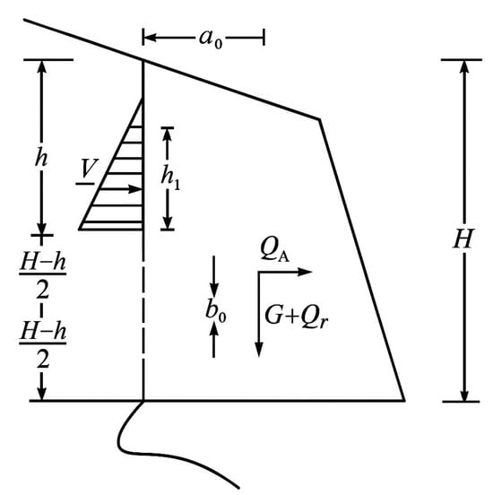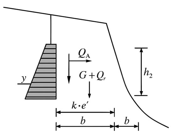 (a) When the centroid of the hazardous rock mass is located on the inner side of the midpoint of its base, the basal break-off toppling stability is calculated using the following equation (Figure 6):